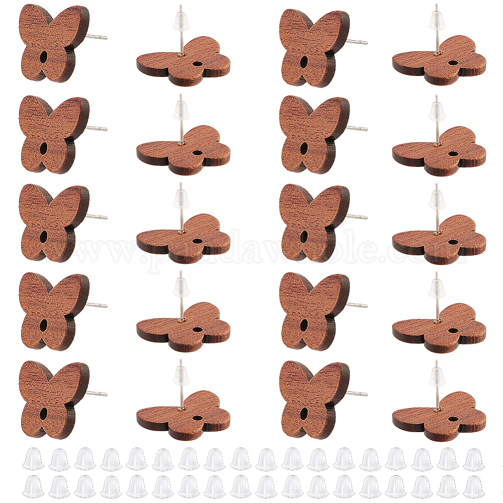 20 пары фурнитуры для сережек из орехового дерева, с отверстием и 304 штифтом из нержавеющей стали и 50 пластмассовой ушной гайкой, бабочка
