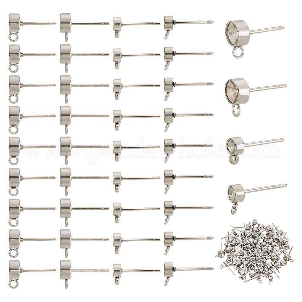 80шт. 4 стиль 201 и 304 фурнитура для сережек-гвоздиков из нержавеющей стали, с петлями и 304 штифтами из нержавеющей стали, для заостренного горного хрусталя, плоско-круглые