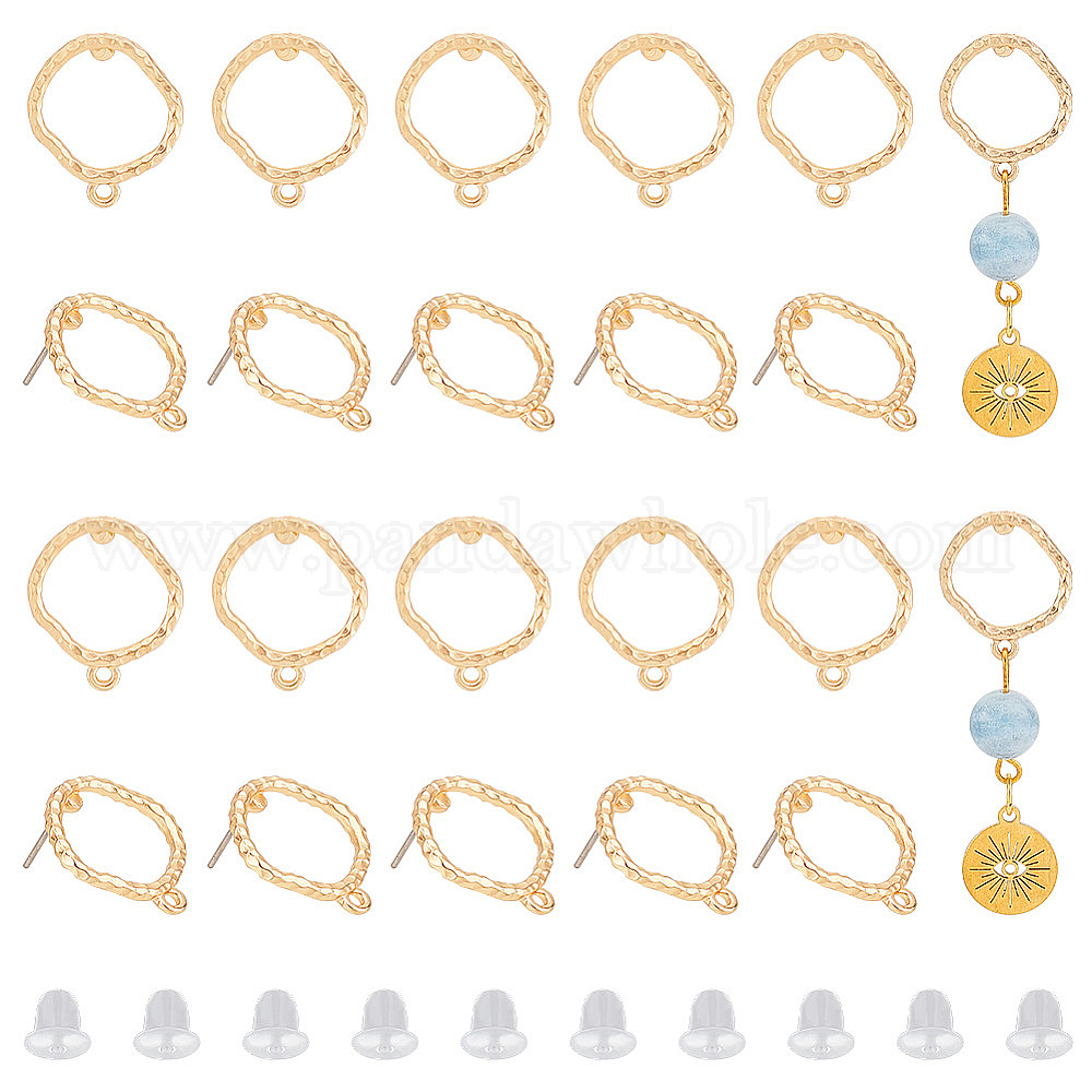 • Матовый Золотой Цвет 20шт. цинковый сплав серьги-гвоздики фурнитура, с горизонтальными петлями и пластиковыми гайками 40шт., кольцо, матовый золотой цвет, 18x15.5 мм, отверстие : 1.5 мм, штифты : 0.9 мм