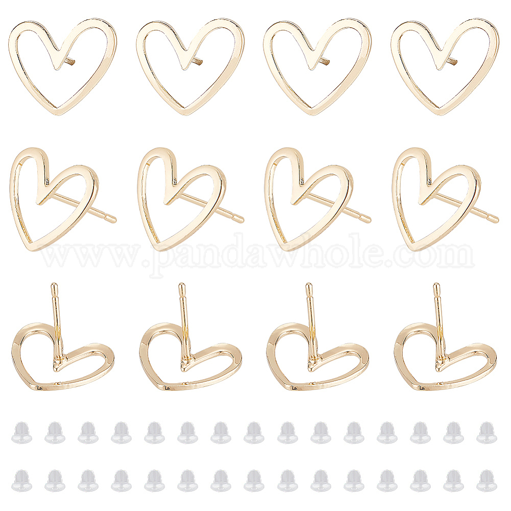 16шт. латунные серьги-гвоздики фурнитура, сердце, с 40 пластиковыми ушными гайками