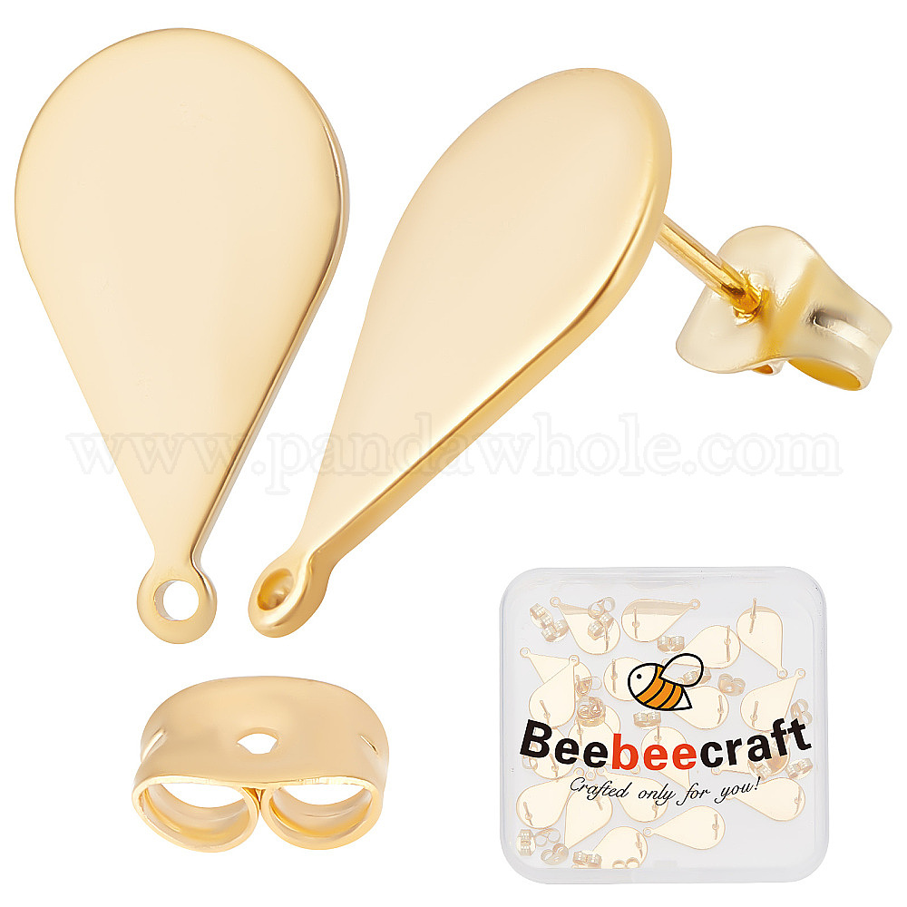 30 шт 201 детали серьги-гвоздики из нержавеющей стали, с горизонтальными петлями и 304 штифтами из нержавеющей стали и ушными гайками, слеза