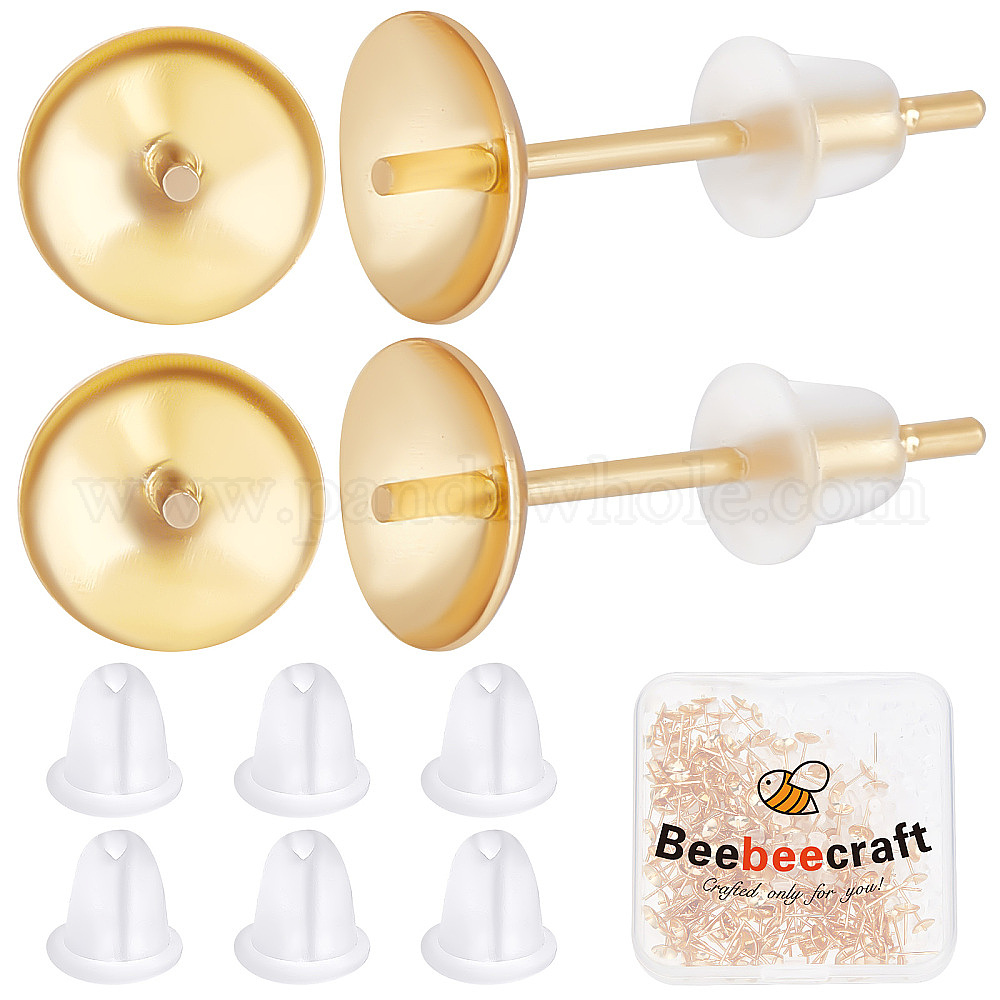 200 шт 304 детали серьги-гвоздики из нержавеющей стали, за половину пробурено бисера, с 200 пластиковыми ушными гайками (02F966)