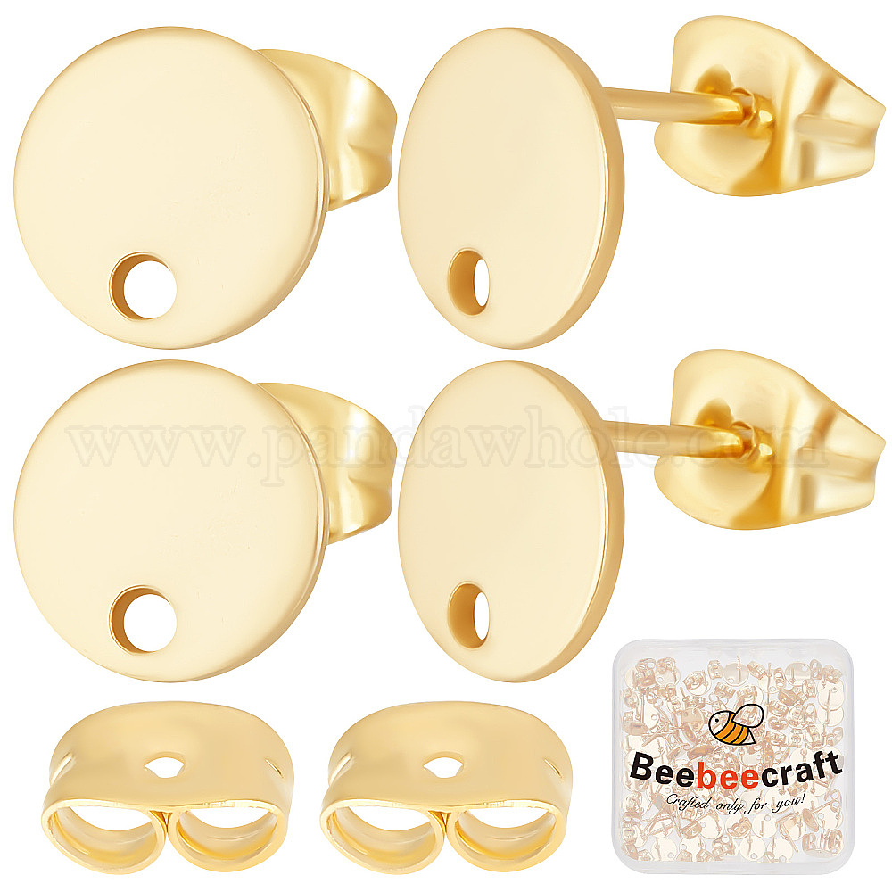 50 пары 304 фурнитура для сережек-гвоздиков из нержавеющей стали, с отверстием и ушными гайками / серьгами сзади, плоско-круглые