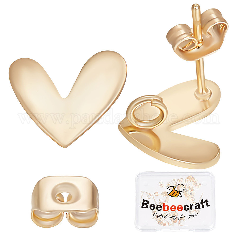 • Настоящее золото 18K 20 шт. латунные серьги-гвоздики, с вертикальными петлями и необработанными (непокрытыми) серебряными булавками, сердце, с ушными гайками 20 шт., реальный 18 k позолоченный, 9.5x11.5 мм, отверстие : 2 мм, штифты : 0.6 мм