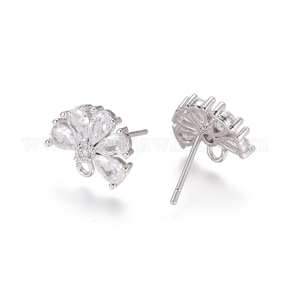 Латунные серьги с цирконом, с горизонтальными петлями, цветок, долговечный, прозрачные