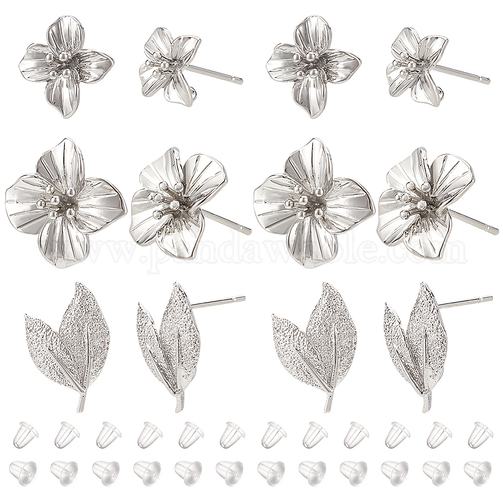 12шт 3 латунные серьги-гвоздики в стиле фурнитуры, с булавкой из стерлингового серебра 925 и вертикальными петлями, цветок и листья, с 30 пластиковыми ушными гайками