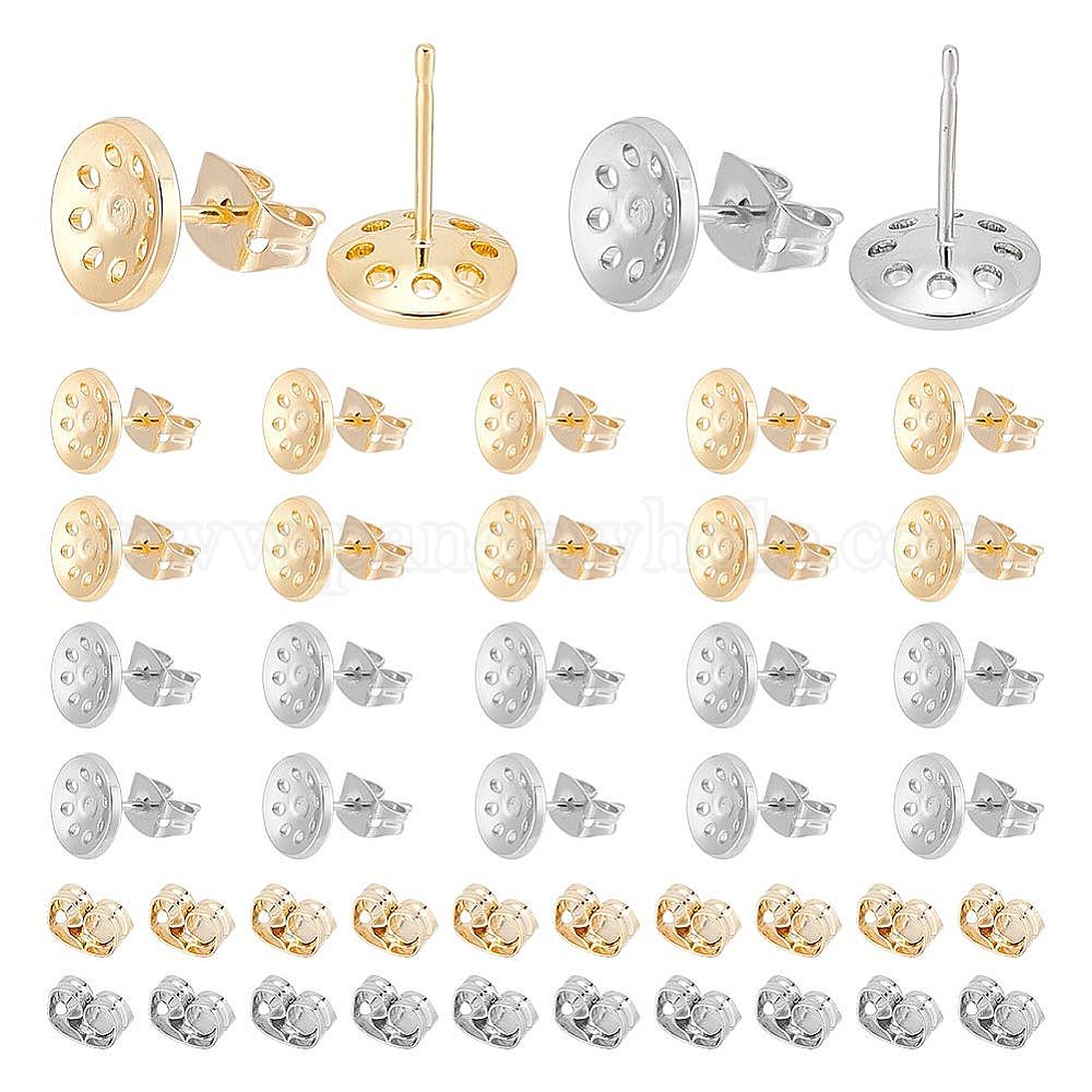 20 пары 2 цветные латунные серьги-гвоздики, сито плоские круглые настройки серьги, с фрикционными гайками 40шт.
