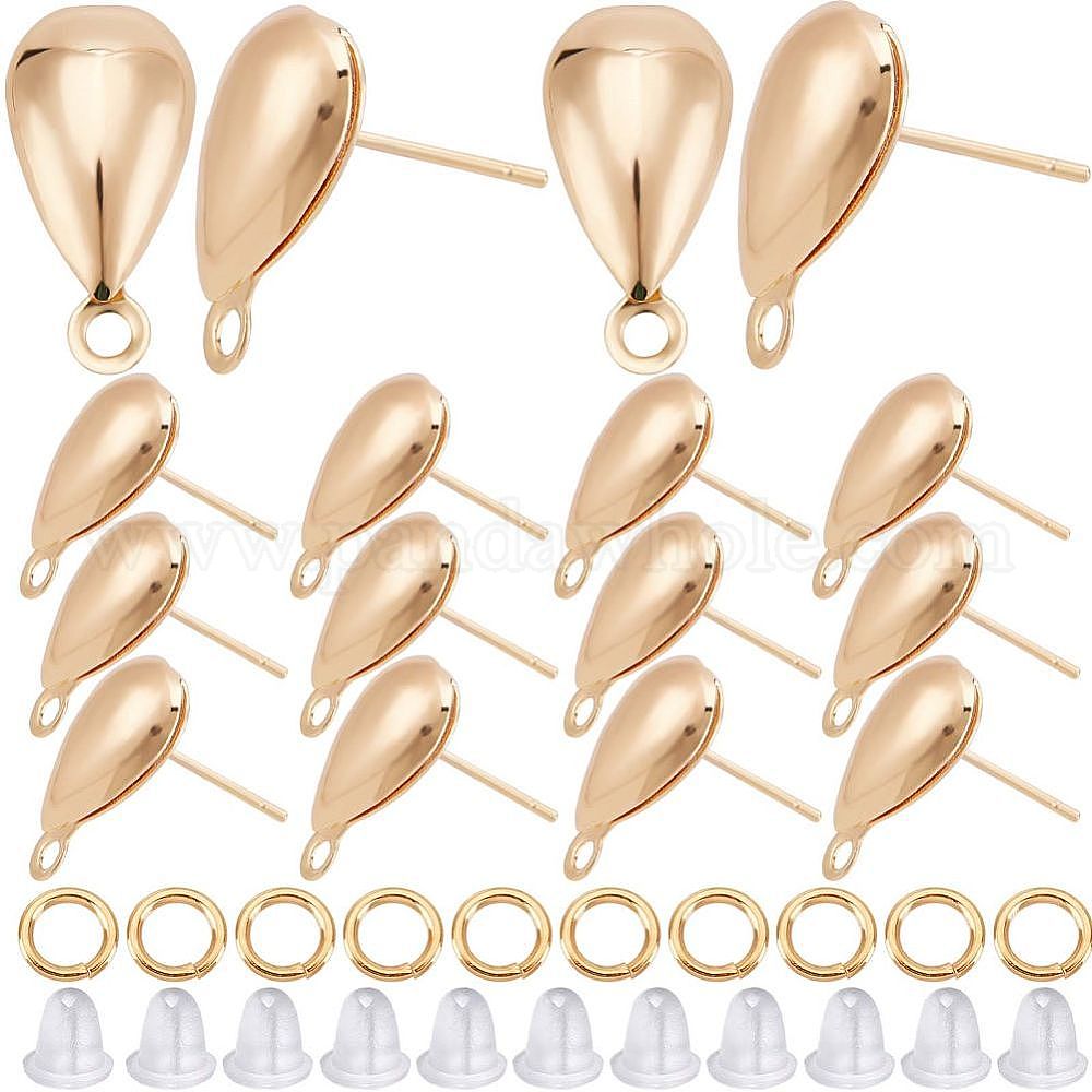 • Настоящее золото 18K 30 шт. латунные серьги-гвоздики, с горизонтальными петлями, слеза, без никеля , 30открытые соединительные кольца и 100пластиковые ушные гайки, реальный 18 k позолоченный, 17x8.5 мм, отверстие : 1.8 мм, штифты : 0.8 мм