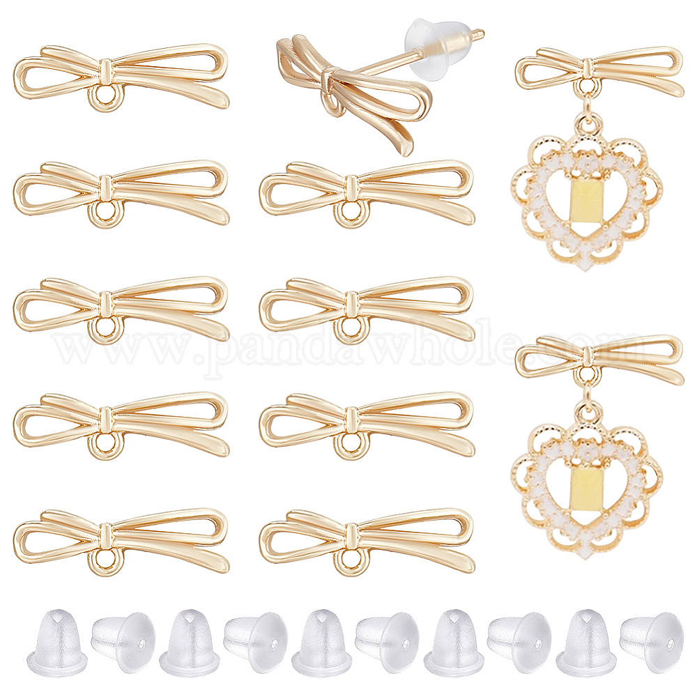 10шт. латунные серьги-гвоздики с бантом, с горизонтальными петлями, с 30 пластиковыми ушными гайками