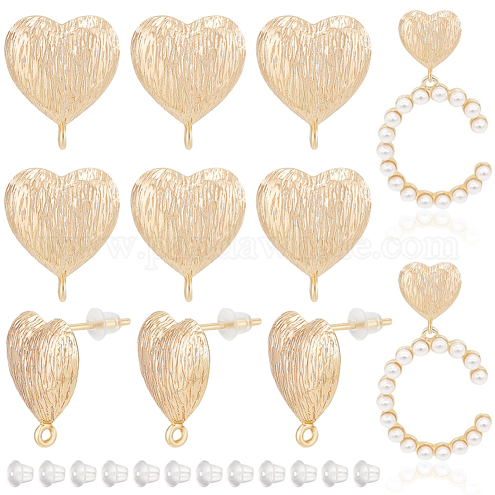 12 шт. латунные серьги-гвоздики, с вертикальными петлями, сердце, с 30 пластиковыми ушными гайками