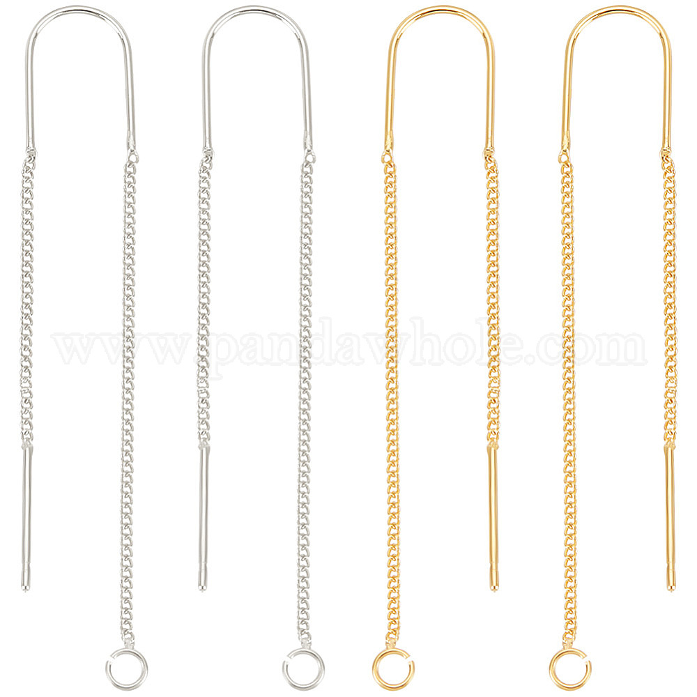 4 пары 2 цвета сплава серьги-гвоздики фурнитура, ушные резьбы, с 925 булавками из стерлингового серебра и горизонтальными петлями