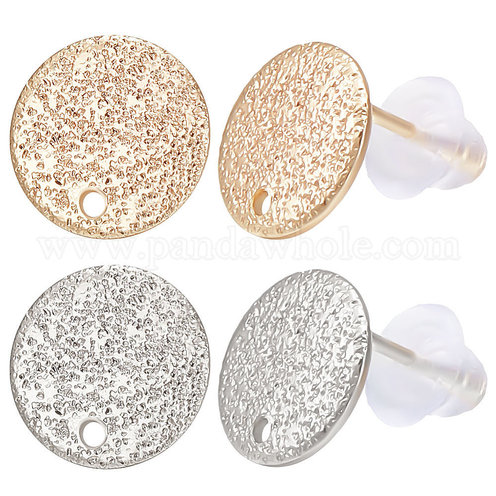 32шт. 2 цвета кованые латунные серьги-гвоздики фурнитура, плоско-круглые, с 40экологичными пластиковыми ушными гайками