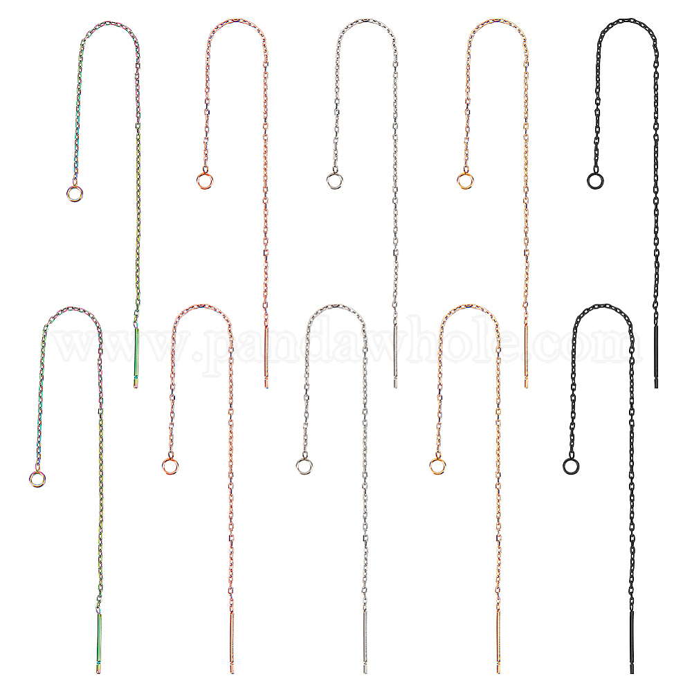 304 серьги-гвоздики из нержавеющей стали: ширина около 0.7мм, 109 мм длиной, толщиной 0.25 мм , отверстие : 1.7 мм, штифты : 0.7 мм, 5 цветов, 2 пар / цвет, 10 пары;