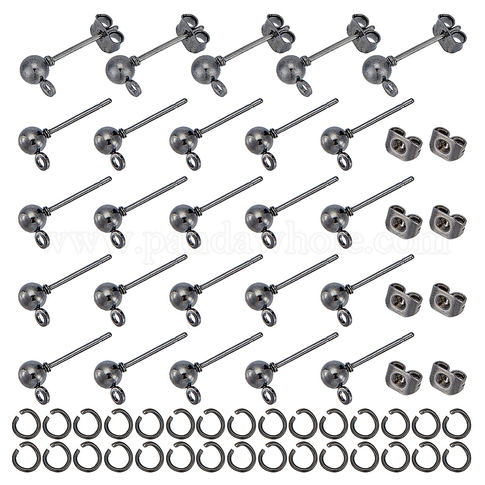 100 Шт. железные шариковые серьги-гвоздики, с горизонтальными петлями и 100шт фрикционными ушными гайками и 100шт 304 открытыми соединительными кольцами из нержавеющей стали