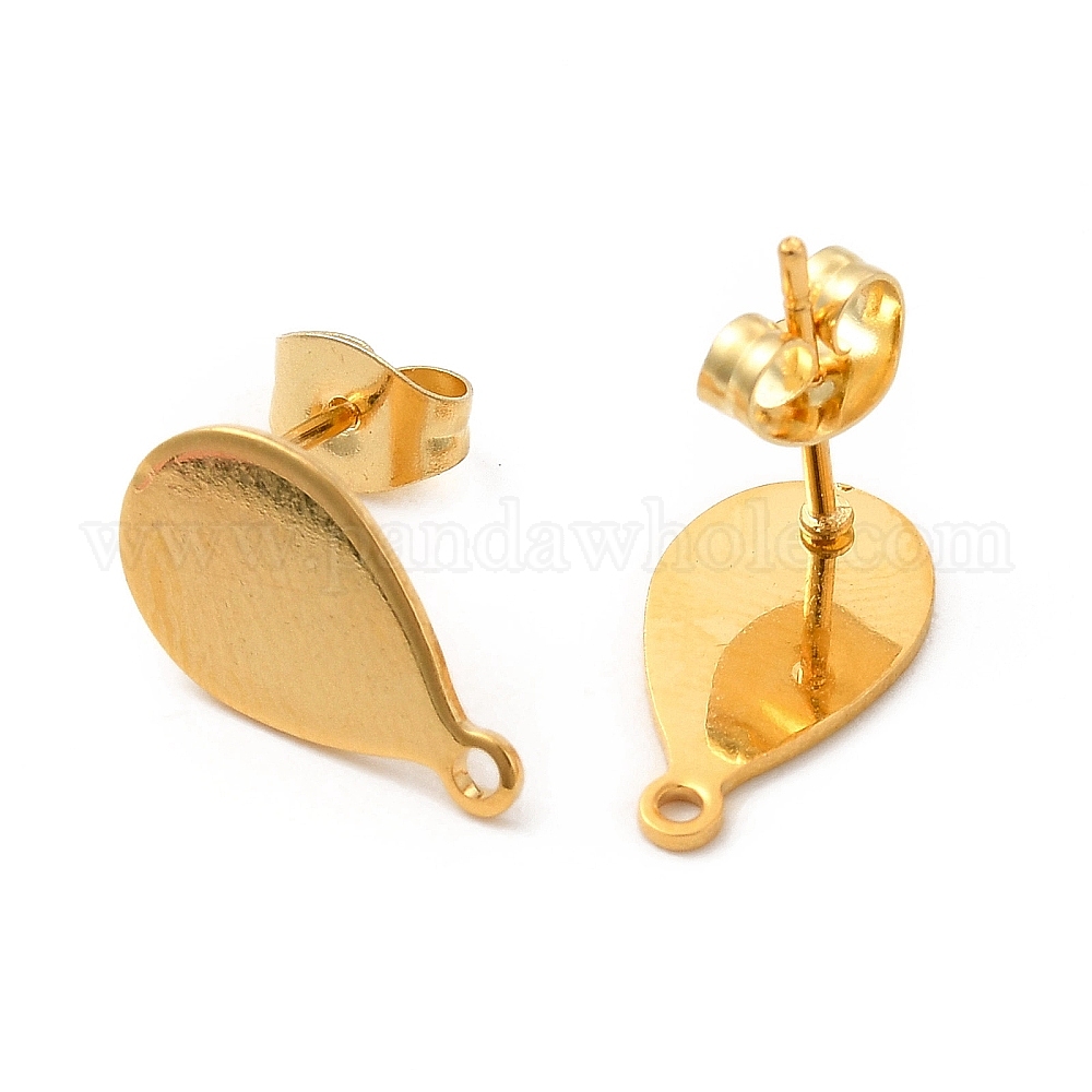 • Настоящее золото 24K 201 Выводы серьги из нержавеющей стали шпилька, с 304 штифтами из нержавеющей стали и горизонтальными петлями, слеза, реальный 24 k позолоченный, 14x8 мм, штифты : 0.8 мм