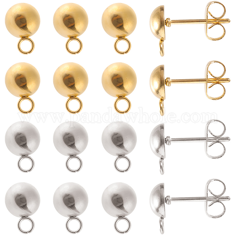 40 шт. 2 цвета 201 фурнитура для сережек-гвоздиков в форме купола/полукруглая из нержавеющей стали, с горизонтальной петлей и 304 штифтами из нержавеющей стали
