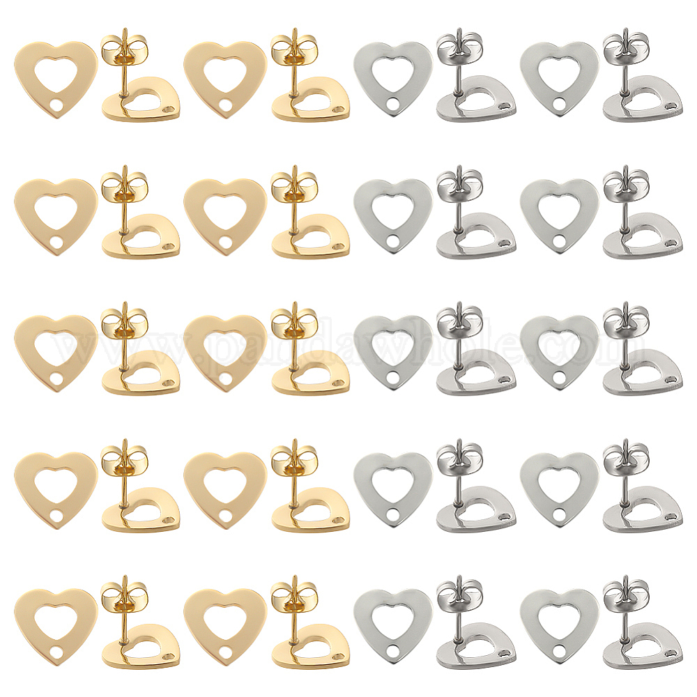 40шт. 2 цвет 201 фурнитура для сережек-гвоздиков в форме сердца из нержавеющей стали, с отверстием и 316 штифтом из нержавеющей стали и 40 ушными гайками
