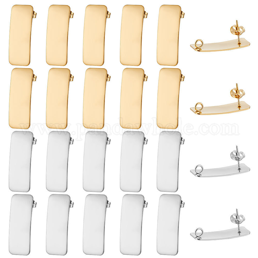 28 шт. 2 цвета 304 детали серьги-гвоздики из нержавеющей стали, с вертикальными петлями, закругленный прямоугольник