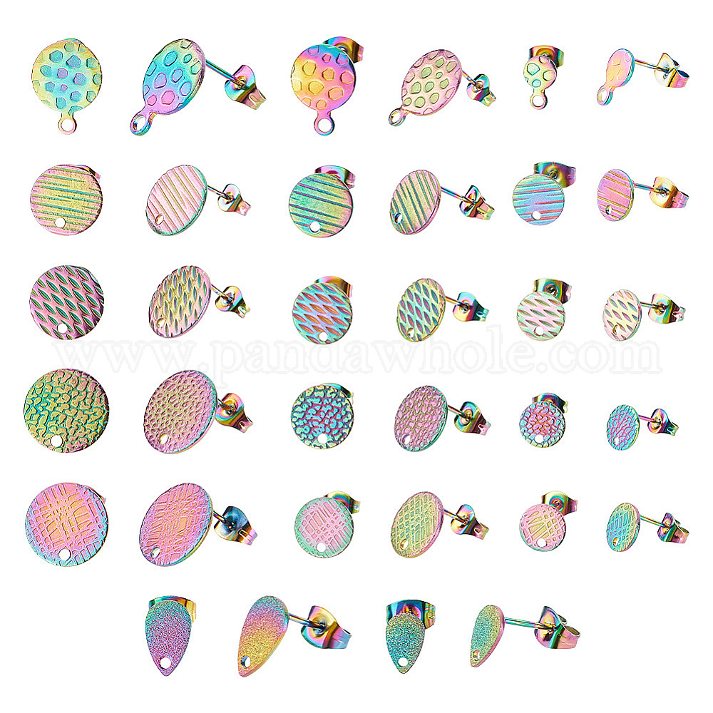 34 шт. 17 стильное ионное покрытие (ip) 304 выводы серьги-гвоздики из нержавеющей стали, текстурированная каплевидная и плоская круглая