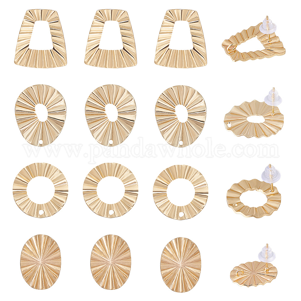 • Настоящее золото 18K 16шт. 4 фурнитура для сережек-гвоздиков в форме пончика, плоской, круглой и трапециевидной формы из латуни, с вертикальными петлями и 30пластиковыми ушными гайками, реальный 18 k позолоченный, 17x21.5x13~19 мм, отверстие : 1.2~2 мм, штифты : 0.7~0.8 мм, 4 шт / стиль