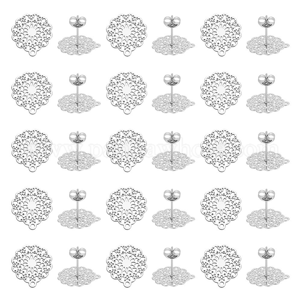 30 шт 304 детали серьги-гвоздики из нержавеющей стали, с горизонтальной петлей, филигранные цветок