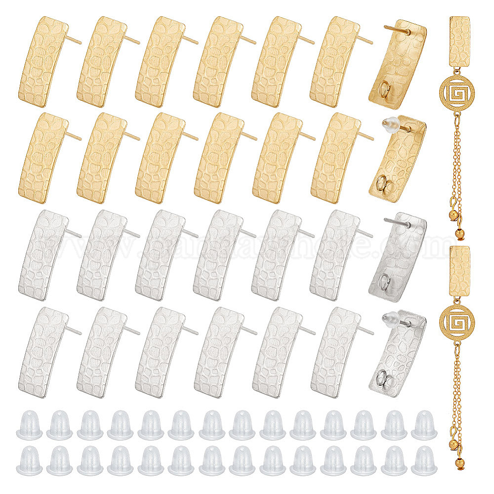 32шт. 2 цвет 304 серьги-гвоздики из нержавеющей стали, прямоугольные, с вертикальными петлями и пластиковыми ушными гайками 80шт.