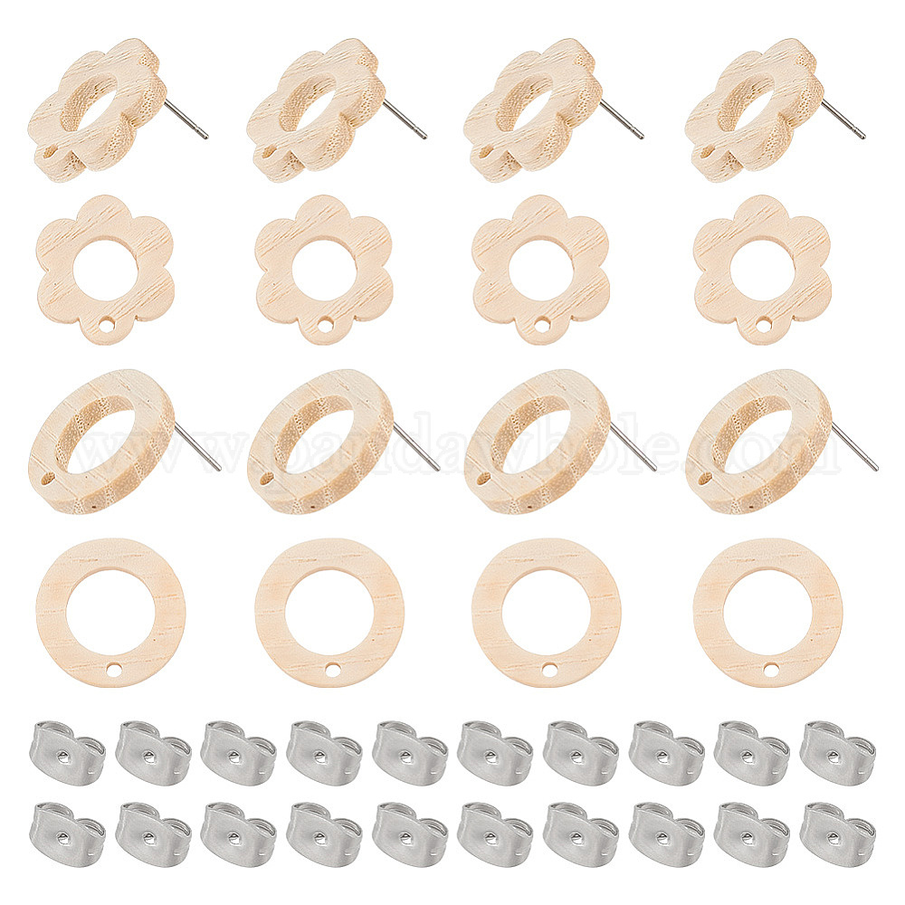 32шт 2 фурнитура для сережек-гвоздиков в стиле пончика и цветка из натурального ясеня, с 304 штифтом из нержавеющей стали и 32 ушными гайками