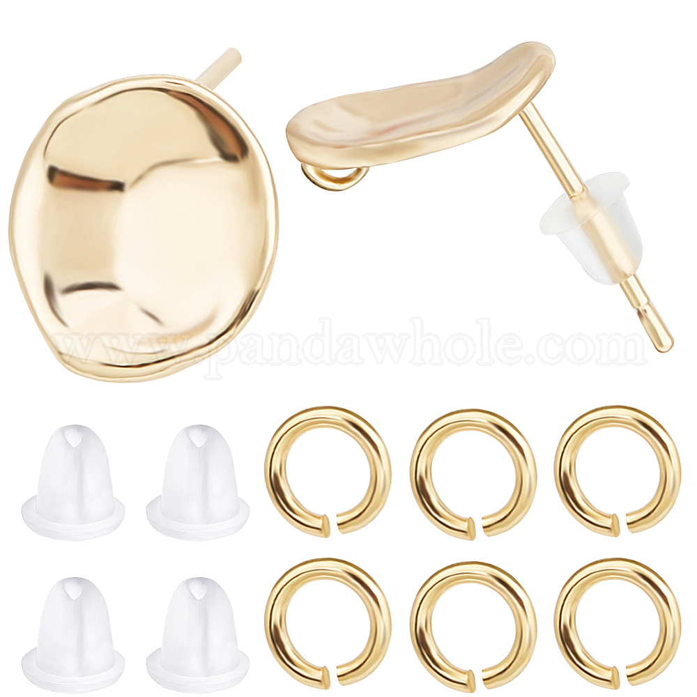 10 шт. латунные серьги-гвоздики, плоско-круглые, с вертикальными петлями, с соединительными кольцами 40шт. и пластиковыми ушными гайками 20шт.