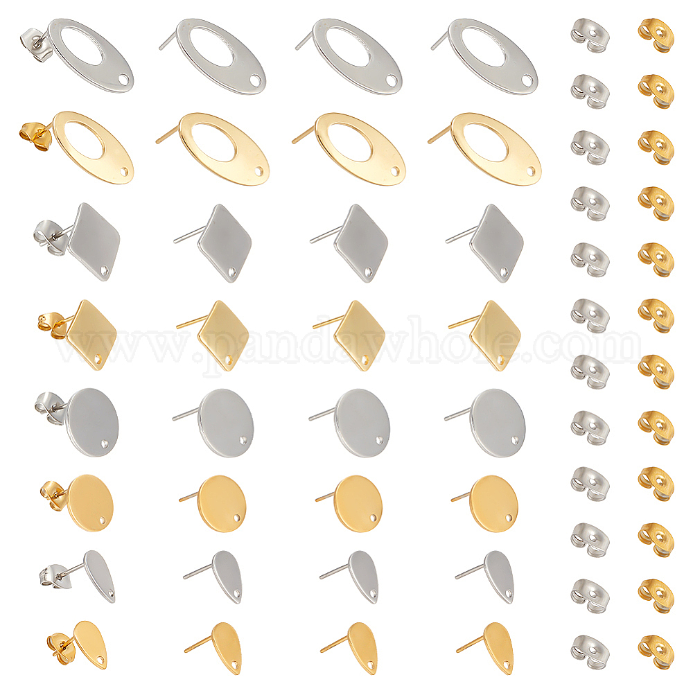 32 шт 8 стиль 304 серьги-гвоздики из нержавеющей стали, овальные и ромбические и плоские круглые и каплевидные