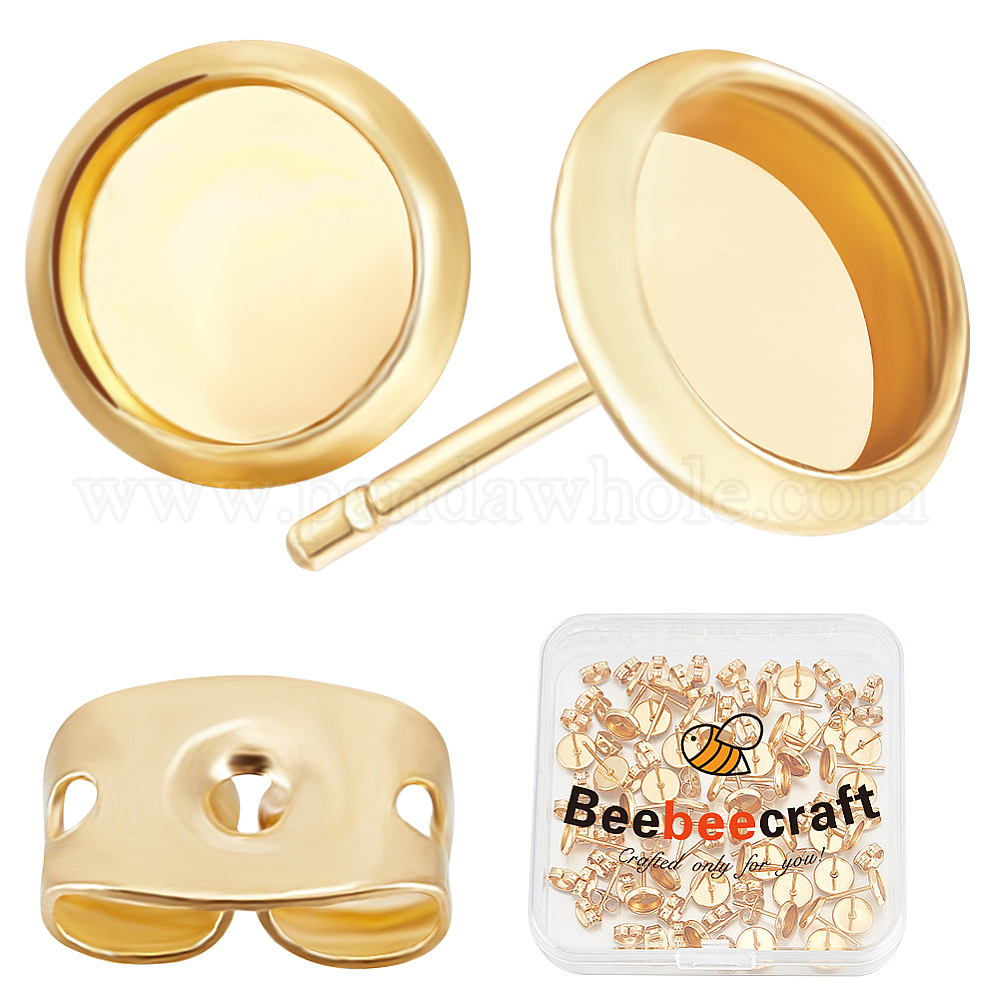 50 плоско-круглые шт. 304 серьги-гвоздики из нержавеющей стали, с ушными гайками 50 шт.