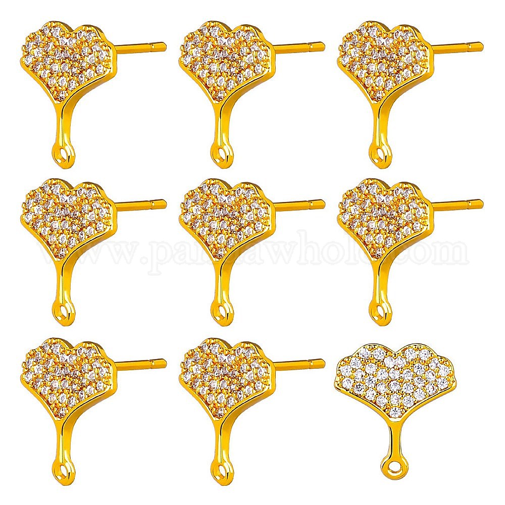 10Шт. латунная фурнитура для серег-гвоздиков из прозрачного кубического циркония с микропаве, с горизонтальными петлями, гингко лист, с 20 силиконовыми ушными гайками