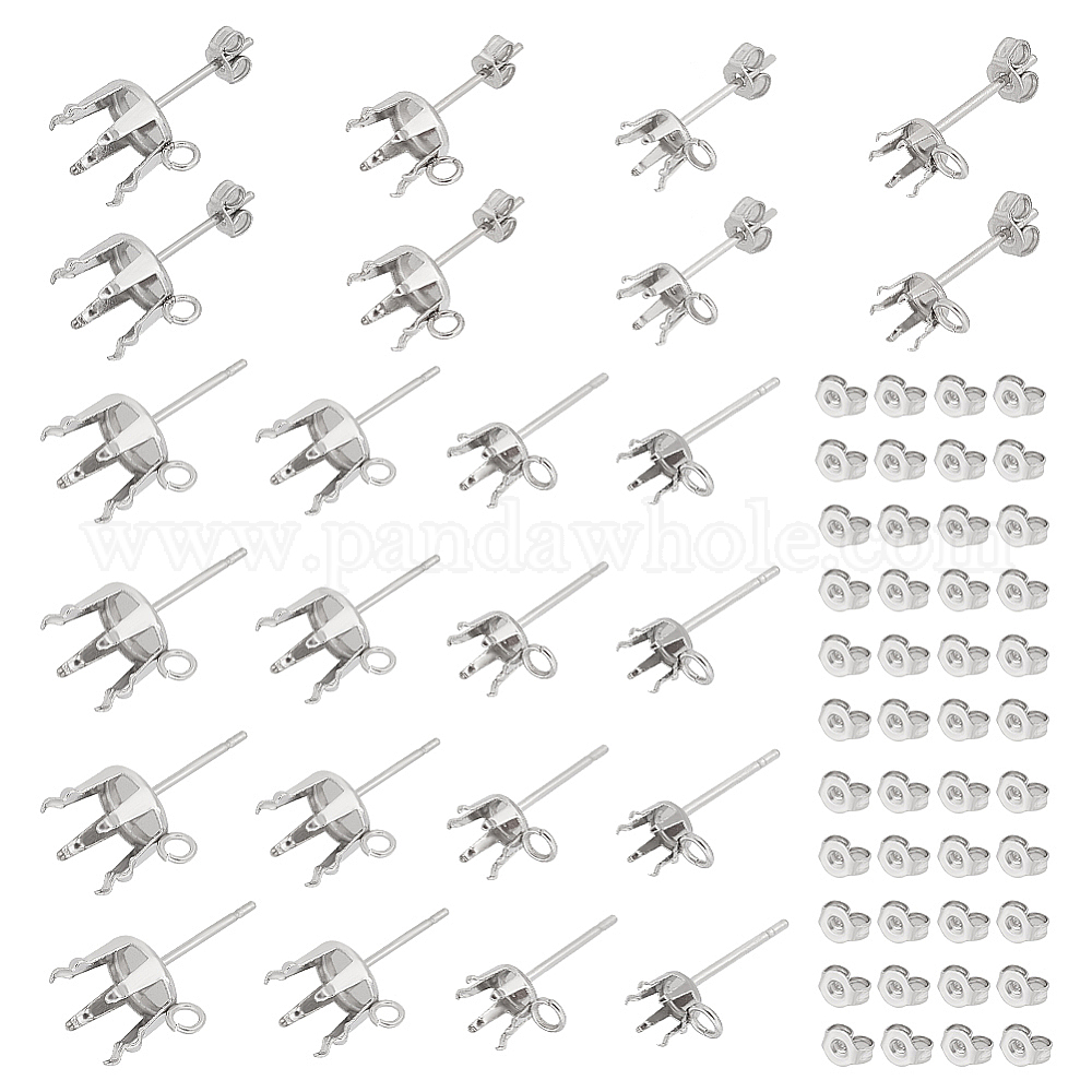 80 шт. 4 стиль 304 плоские круглые серьги-гвоздики из нержавеющей стали, оправы для сережек со стразами, с горизонтальными петлями и ушными гайками 80шт.