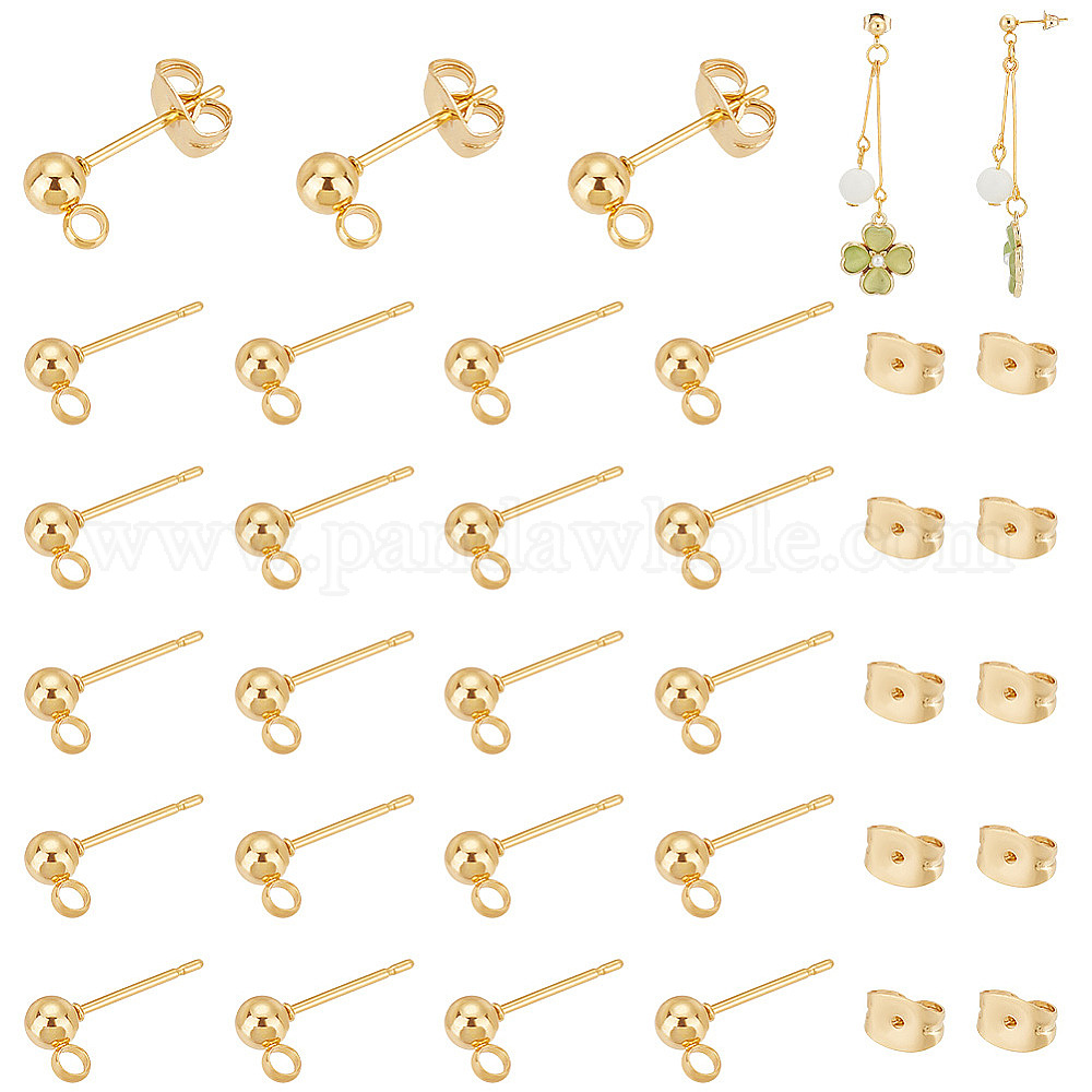 80шт. 316 фурнитура для сережек-гвоздиков из хирургической нержавеющей стали, серьги-гвоздики с мячом, с вертикальной петлей и ушками из нержавеющей стали 80шт. 304