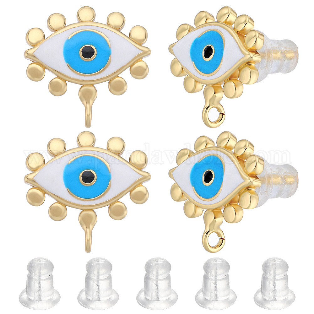 • Настоящее золото 18K 4 пары латунных сережек-гвоздиков от сглаза, с эмалированными и пластиковыми ушками и вертикальными петлями, долговечный, реальный 18 k позолоченный, 12.5x13 мм, отверстие : 1.2 мм, штифты : 0.9 мм