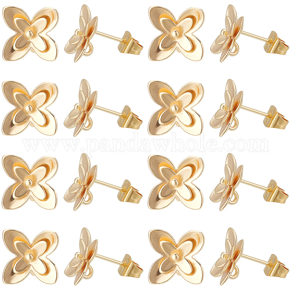 20 шт. латунные серьги-гвоздики, за половину пробурено бисера, цветок, с ушными гайками 20 шт.