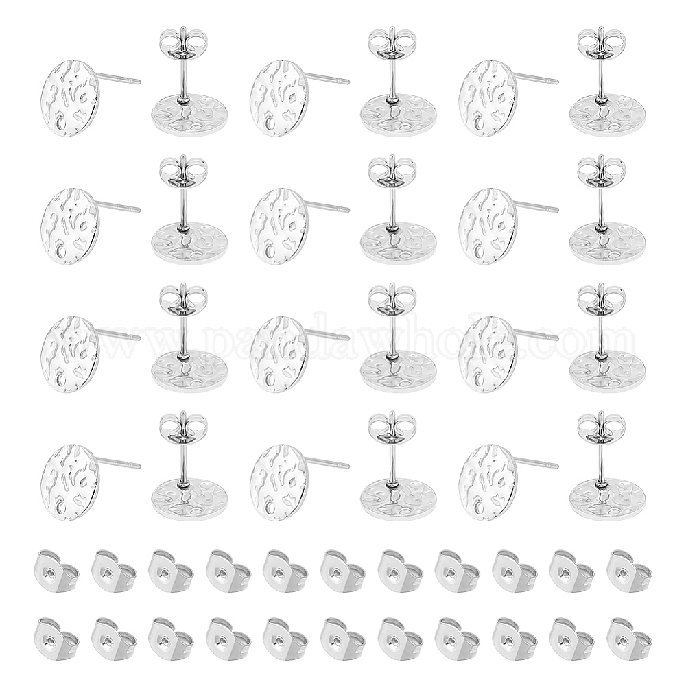 60шт. 201 плоские круглые серьги-гвоздики с текстурой из нержавеющей стали, с 304 штифтами из нержавеющей стали и 100 шт. ушными гайками