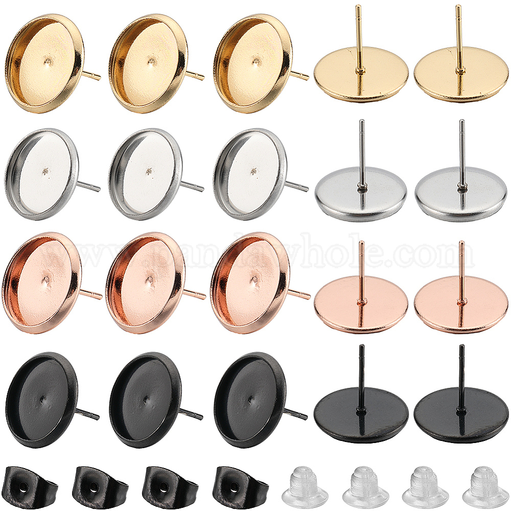 40 шт. 4 цветные плоские круглые 304 серьги-гвоздики из нержавеющей стали, с 50 пластиковыми ушными гайками