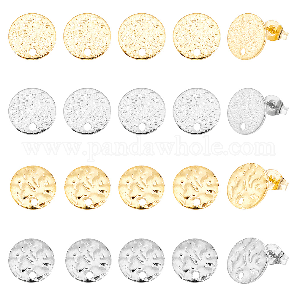 40 шт. 4 стили 201 плоские круглые серьги-гвоздики из нержавеющей стали, с 304 штифтов из нержавеющей стали