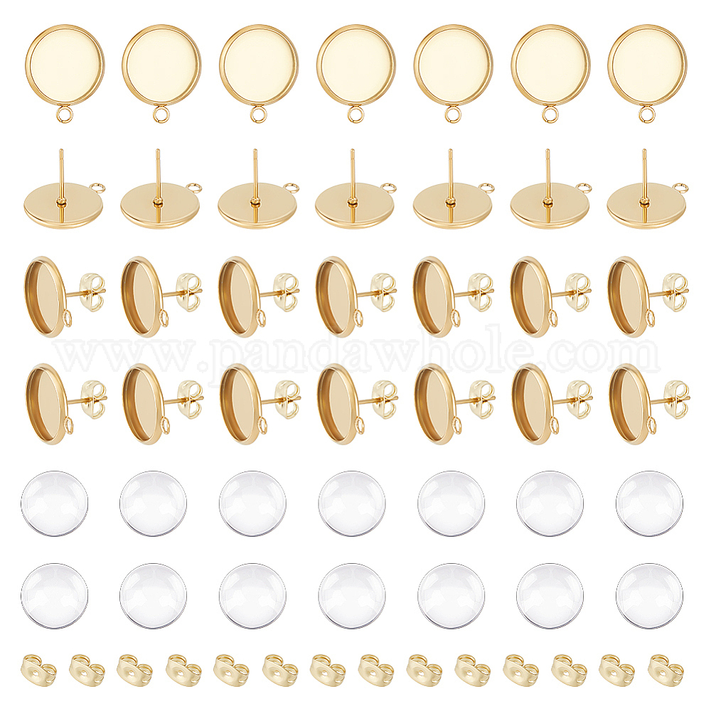 30 шт. 304 плоские круглые серьги-гвоздики из нержавеющей стали, с горизонтальными петлями и ушными гайками 30шт., с 30 стеклянными кабошонами