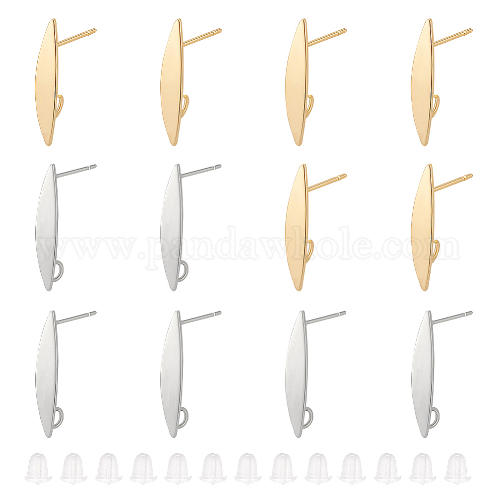 16шт. 2 цвета латунные серьги-гвоздики фурнитура, «Конский глаз» с вертикальной петлей и пластиковыми ушками из 20 шт.