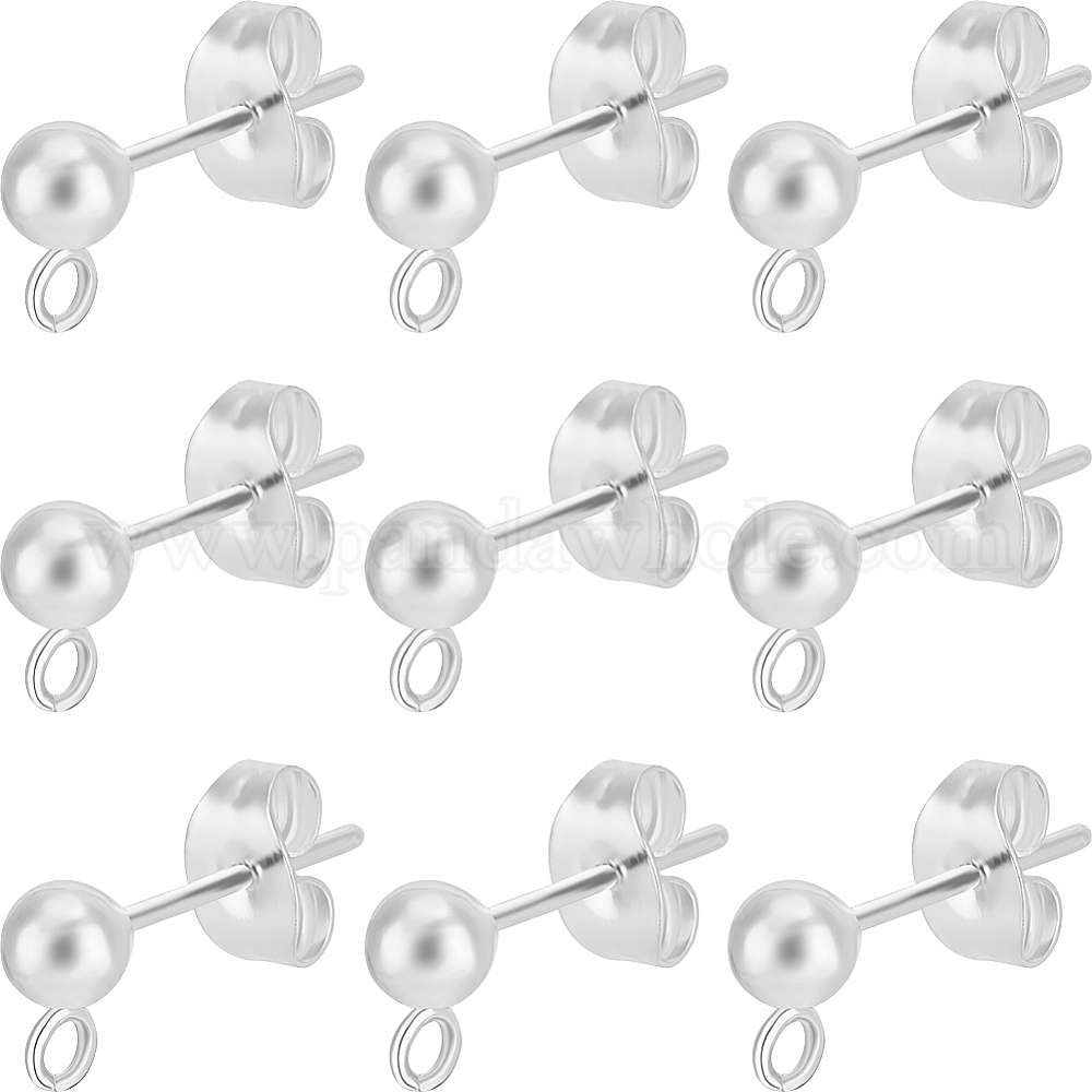 60шт 304 шарообразный штифт из нержавеющей стали для серьги, выводы серьги, с вертикальными петлями и гайками 60шт.
