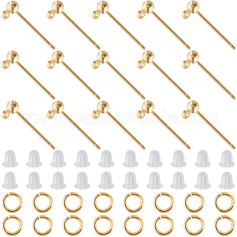 80шт. латунные серьги-гвоздики фурнитура, круглая серьга-пусет с шариком и горизонтальными петлями, с 100 пластиковыми ушными гайками, 80 открытые прыжковые кольца