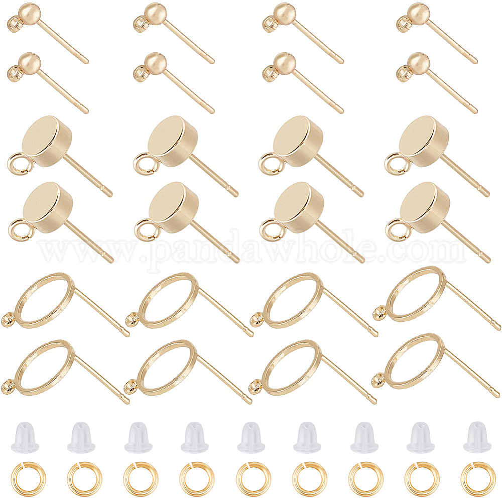 30 шт 3 стиль кольцо и плоские круглые и круглые латунные серьги-гвоздики фурнитура, с петлями, 30 гайки ушные пластиковые, 30 шт. Латунные открытые прыжковые кольца