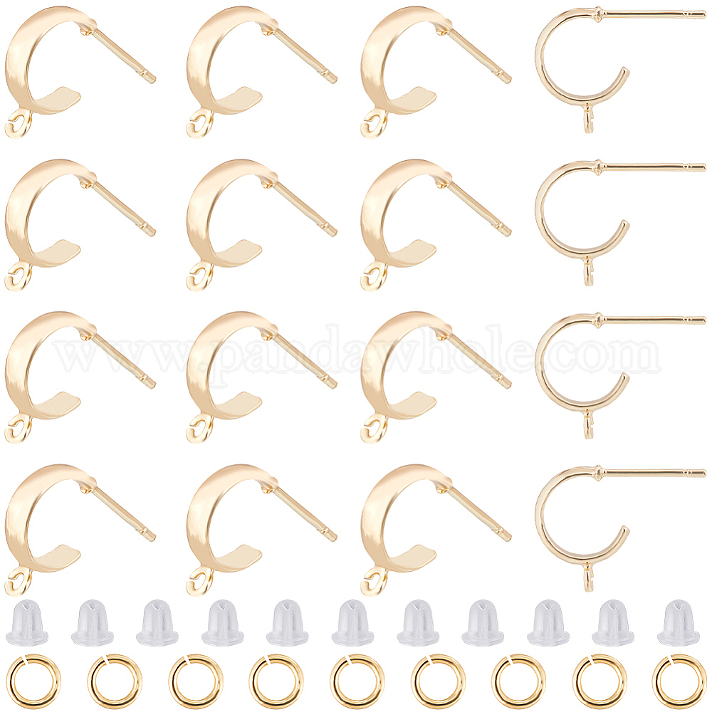 18шт. латунные круглые серьги-гвоздики фурнитура, фурнитура для сережек полукольцо с горизонтальными петлями, с 40 пластиковыми ушными гайками, 20 шт. Латунные открытые прыжковые кольца