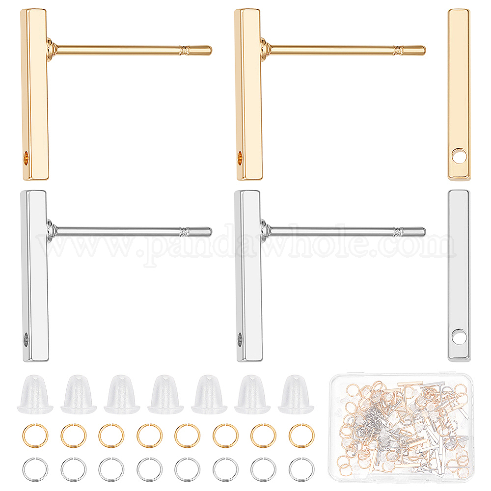 40шт 2 цветной прямоугольный стержень латунные серьги-гвоздики, с 100шт. 304 перемычками из нержавеющей стали и латуни, 50 гайки ушные пластиковые
