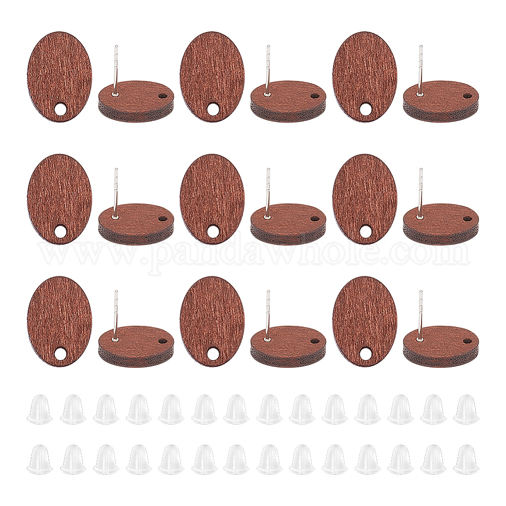 30шт. овальные деревянные серьги-гвоздики, с 60 пластиковыми ушными гайками