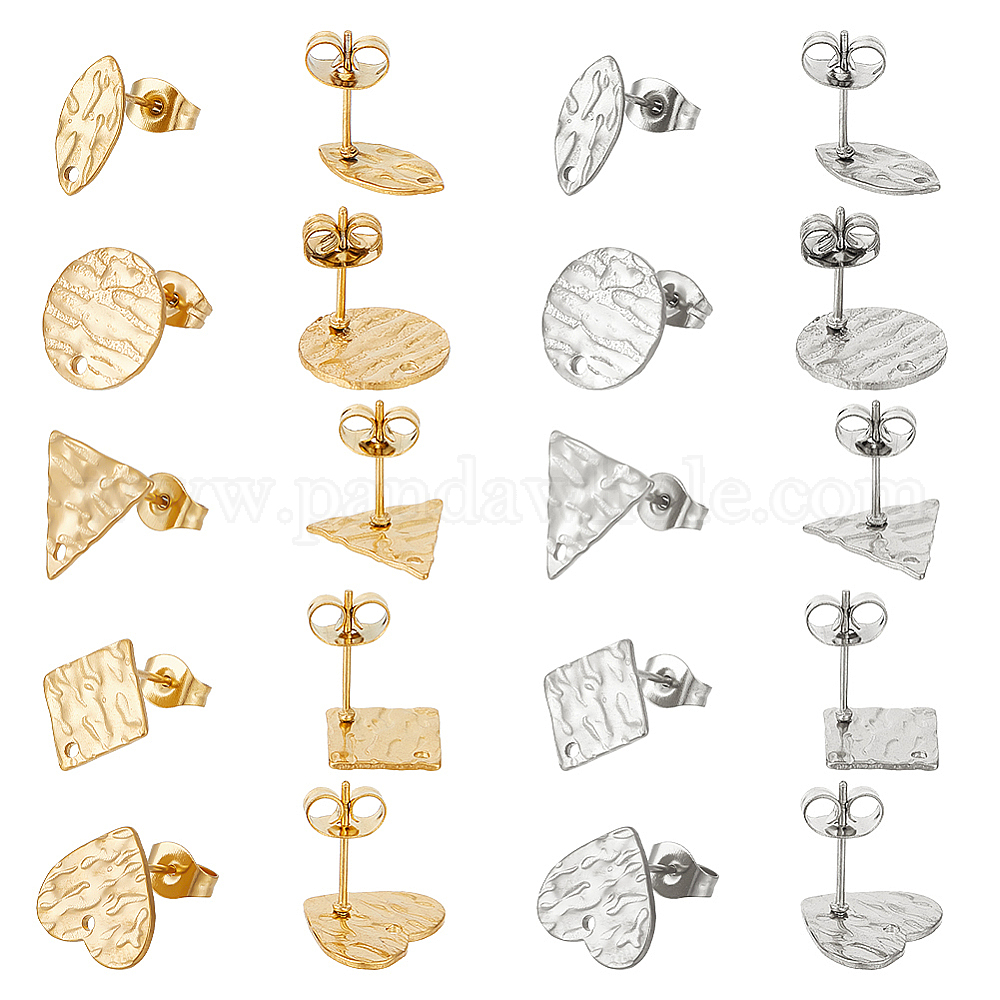 20 шт 10 стиль 304 серьги-гвоздики из нержавеющей стали, с серьгами сзади и отверстием, , плоский круглый, сердце, ромб, треугольник и конский глаз