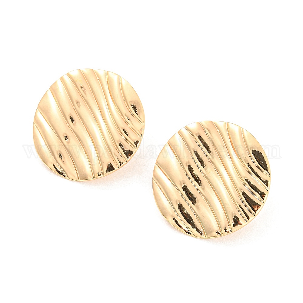 Медные серьги с гвоздиками, без кадмия, без никеля и без свинца, с вертикальными петлями, текстурированный плоский круглый