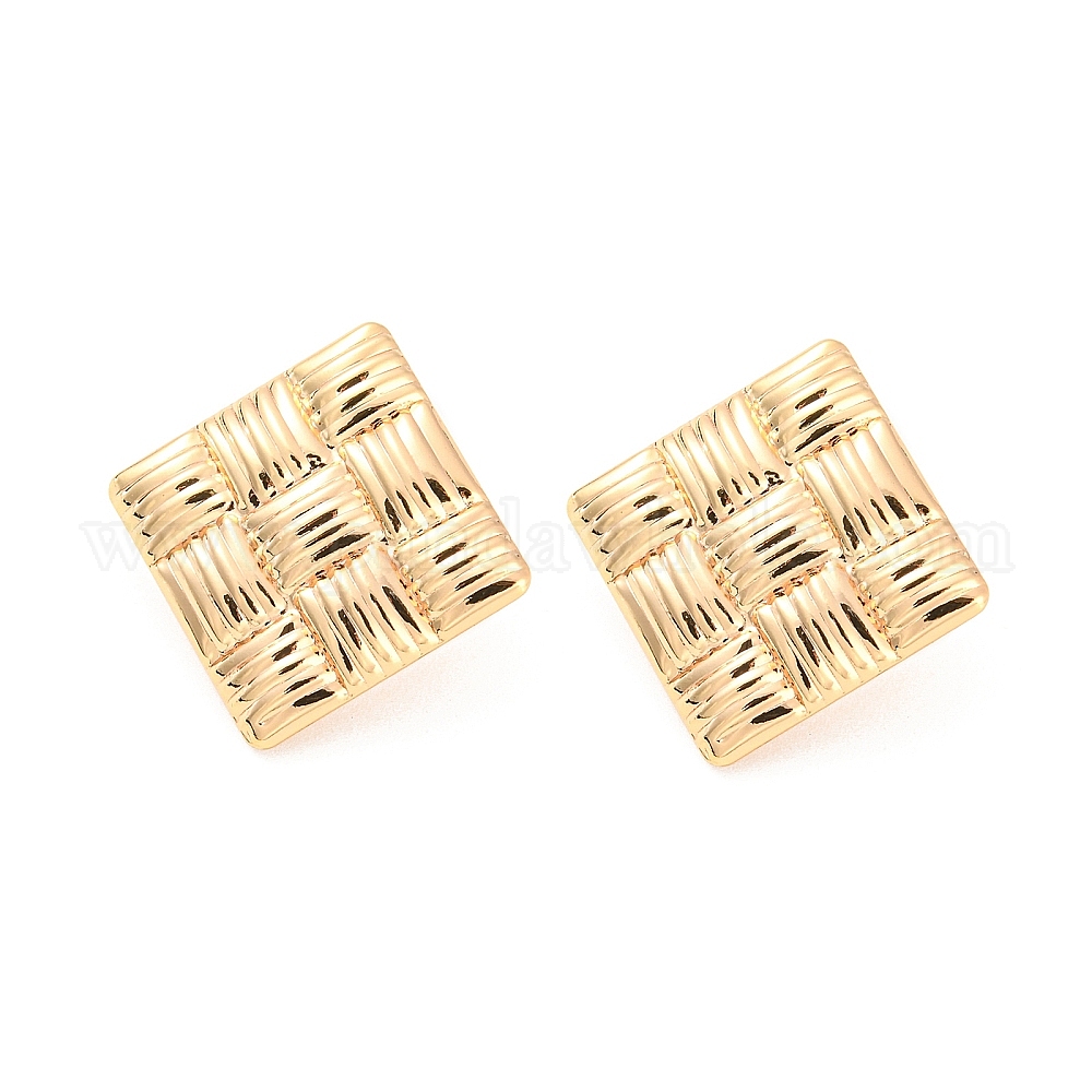• Настоящее золото 18K Медные серьги с гвоздиками, без кадмия, без никеля и без свинца, с вертикальными петлями, текстурированный ромб, реальный 18 k позолоченный, 26x26 мм, отверстие : 2.5 мм, штифты : 0.8 мм