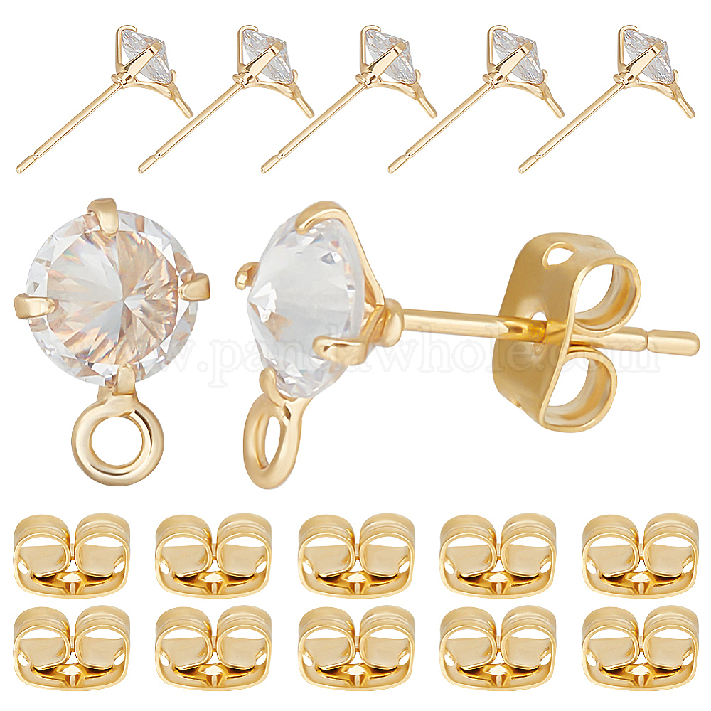 10шт. ромбовидная латунная фурнитура для сережек-гвоздиков, с фианитами и горизонтальными петлями, с фрикционными гайками 10шт.